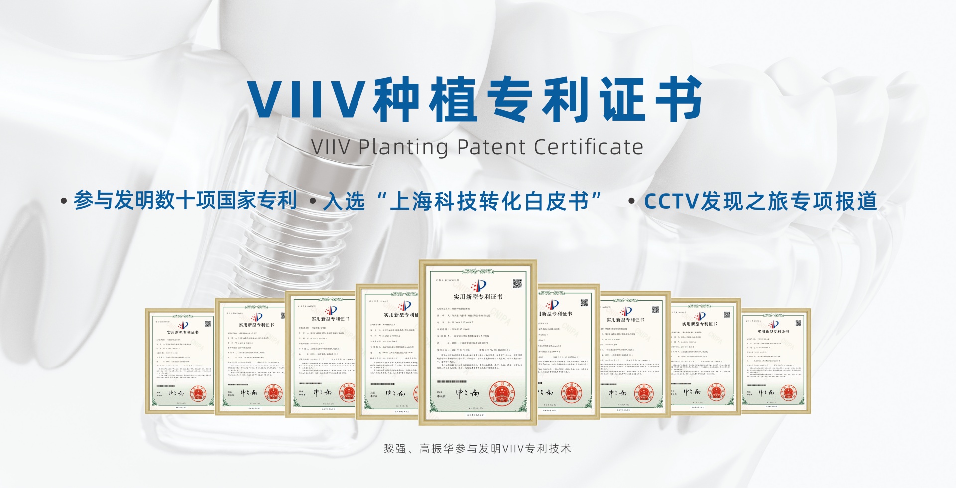 上海鼎植口腔匯聚國(guó)內(nèi)眾多種植醫(yī)師,專注于種植復(fù)雜案例的診斷和解決方案設(shè)計(jì),其中鼎植口腔黎強(qiáng)博士、高振華院長(zhǎng)參與發(fā)明了多項(xiàng)VIIV專利技術(shù)。專利號(hào):ZL202122777243.4